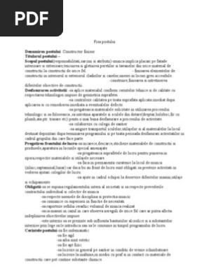 Fisa Post Lacatus Mecanic Doc Document Source from : https://vdocuments.mx/fisa-post-lacatus-mecanic-565c6ac3e50ca.html Raspunsul la aceasta intrebare este disponibil doar pentru utilizatorii inregistrati. Ce cod cor i se atribuie? Verifica gratuit lista firmelor din romania. Inginer mecanic utilaj tehnologic chimic. Absolventi invatamant preuniversitar fara atestat profesional.