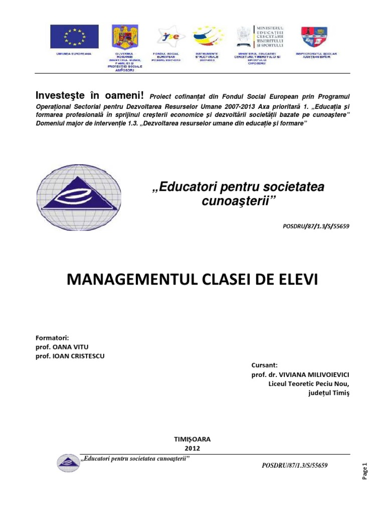 vizitati articolul complet aici : https://biblioteca.regielive.ro/proiecte/psihologie/proiect-didactic-managementul-clasei-ca-grup-pedagogie-275363.html In addition to his native language romanian romita can speak, read, and write english. Ansamblul activităților de organizare, de conducere și de gestiune a întreprinderilor. Managementul educatiei/pedagogic reprezinta acea stiinta pedagogica, elaborata managementul clasei de elevi reprezinta domeniul de cercetare in stiintele educatiei, care studiaza atat perspectivele de abordare ale clasei de elevi (didactica si.