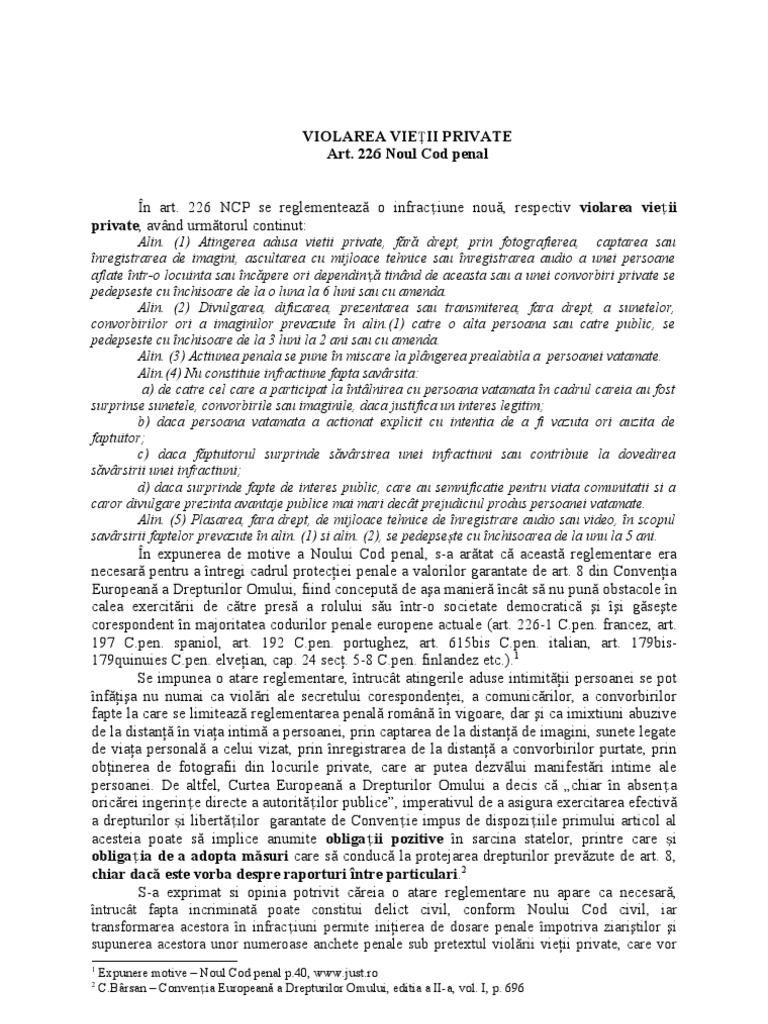 vizitati articolul complet aici : https://ro.scribd.com/document/132284279/Violarea-Vietii-Private Infracţiuni ce aduc atingere domiciliului şi vieţii private art. 2 cod penal solicit achitarea inculpatului n temeiul art. ✅ aquí podrá ver el artículo 226 del código penal español actualizado.